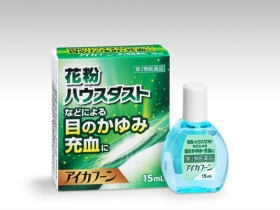 - アイカフーンは、目のかゆみを抑える成分、充血を改善する成分、炎症を抑える成分および新陳代謝を活発にするビタミン成分を配合し、花粉やハウスダストなどによる目のかゆみ・充血にすぐれた効果を発揮します。